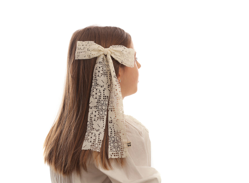 soft, intricate eyelet fabric, featuring a lattice-like pattern of holes that create a whimsical effect