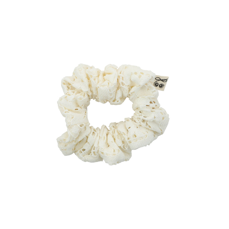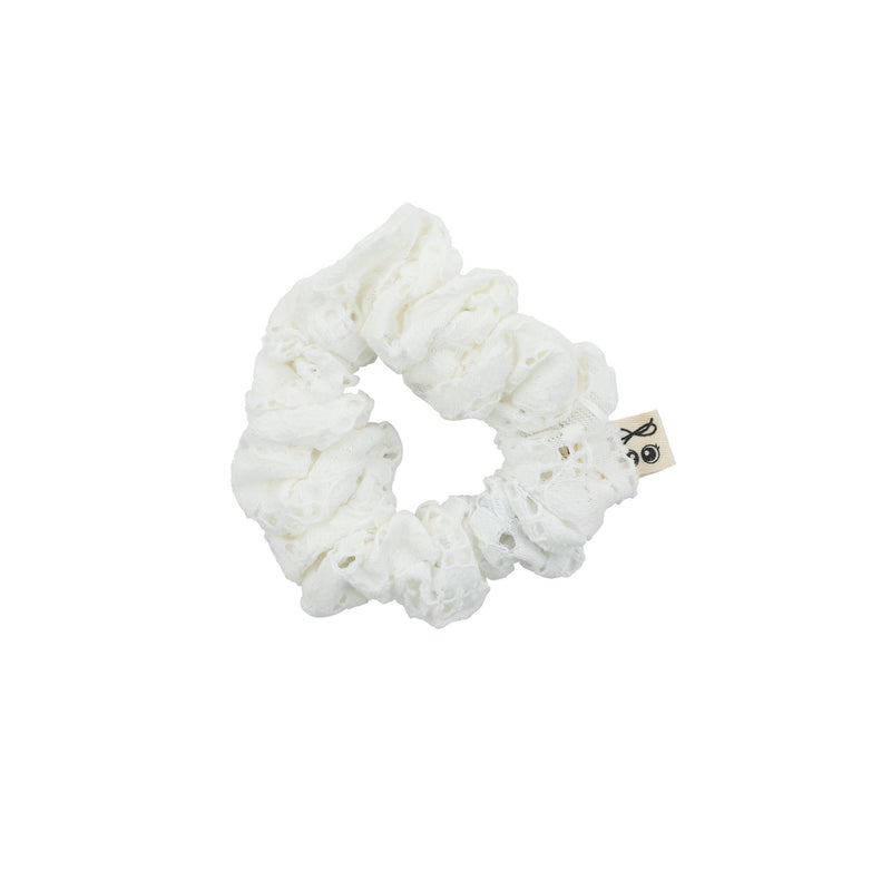 soft, intricate eyelet fabric, featuring a lattice-like pattern of holes that create a whimsical effect