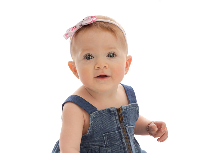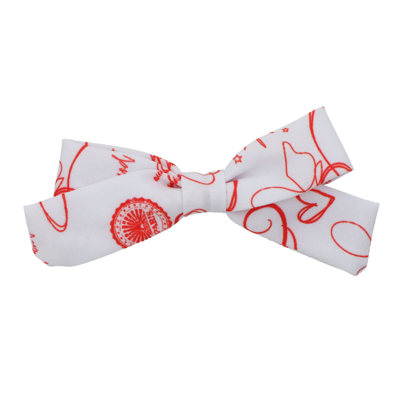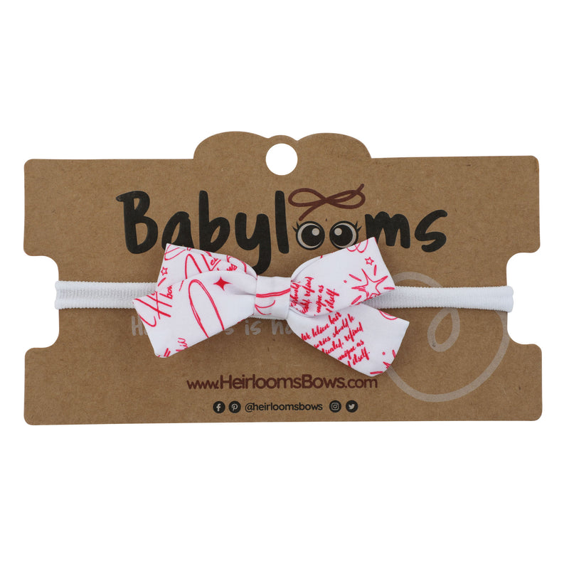 B1465custom designed and manufactured for heirlooms Bows. this fun print makes for a beautiful timeless accessory. bow is attached to a soft elastic band