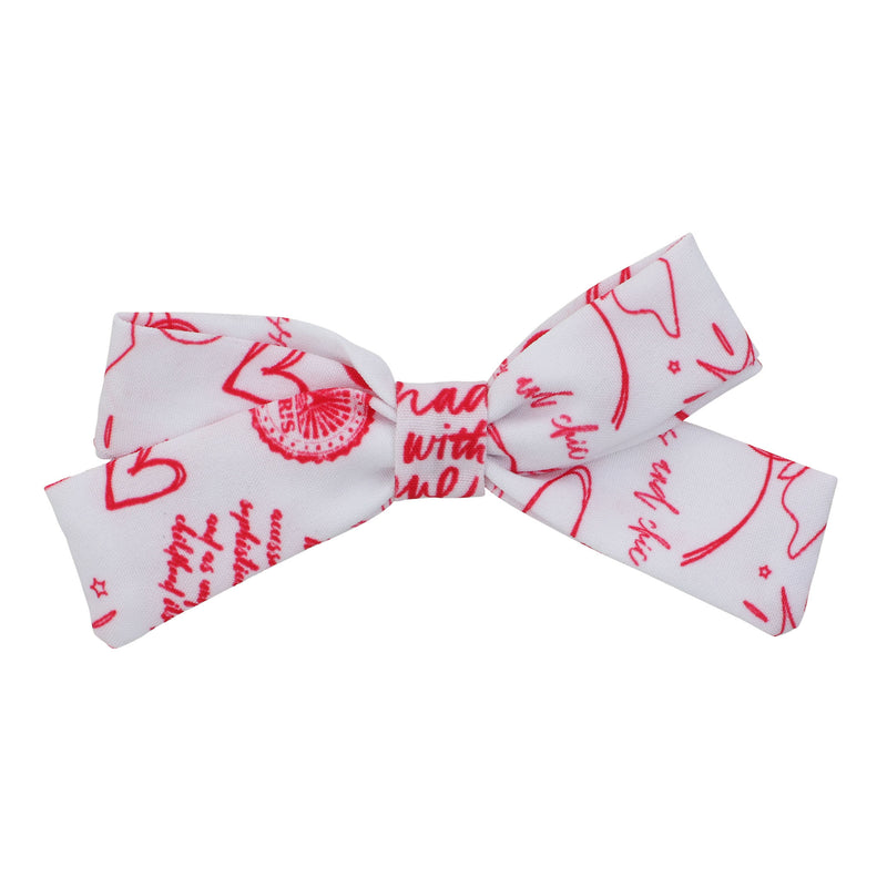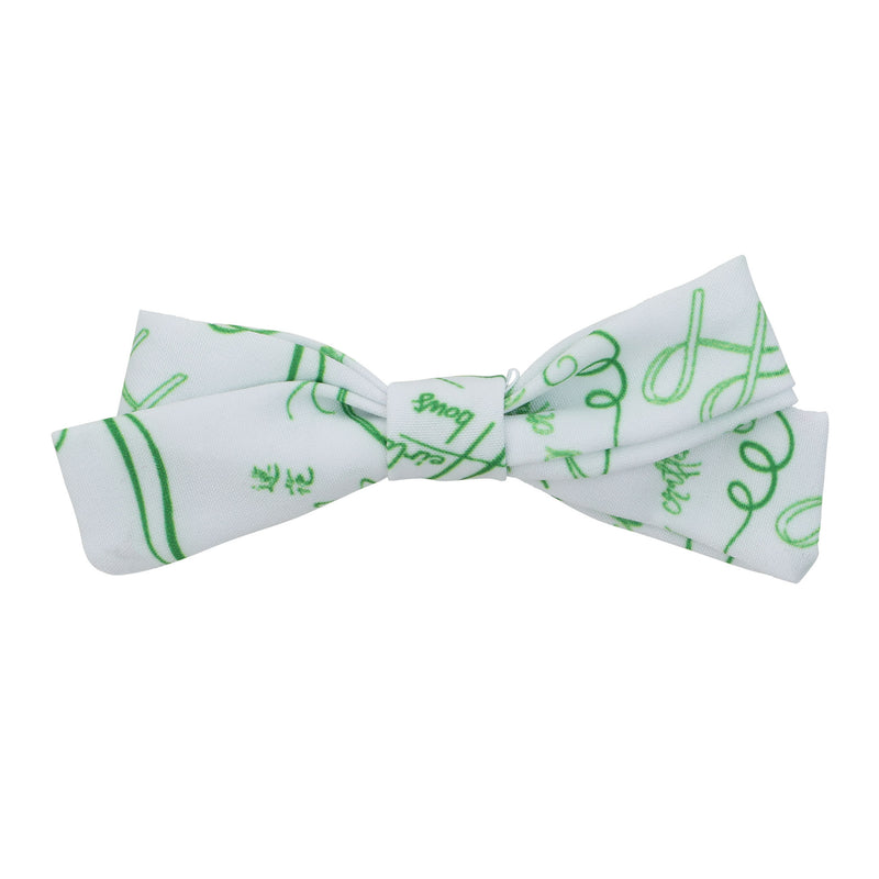 custom designed and manufactured for heirlooms Bows. this fun print makes for a beautiful timeless accessory