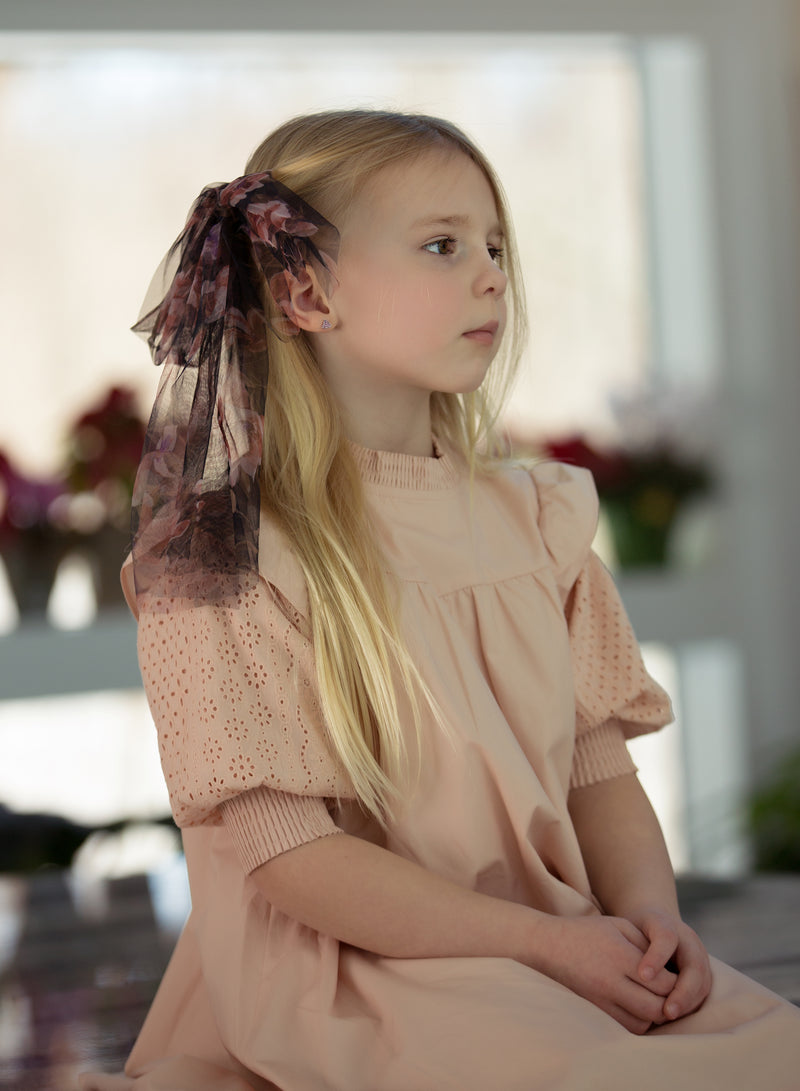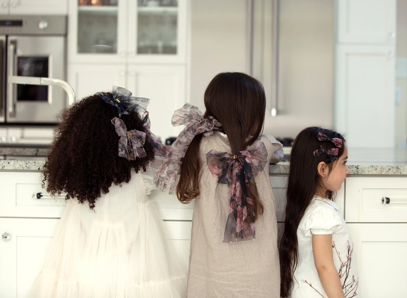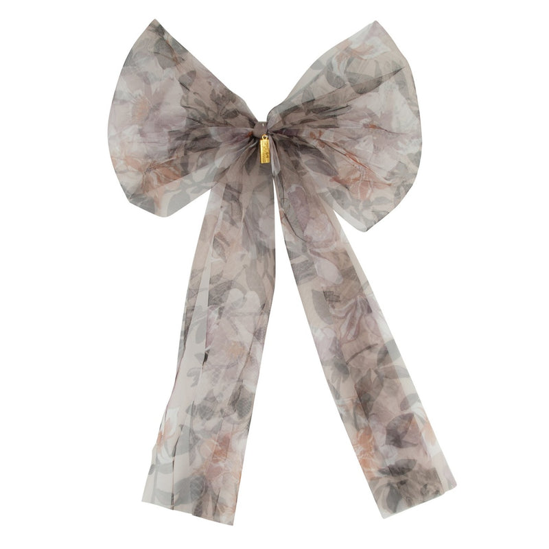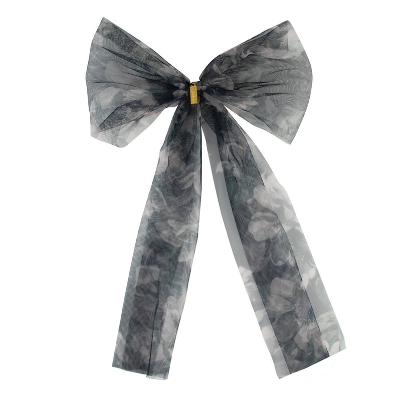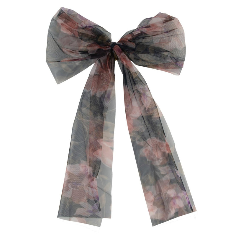 An easy, dressy addition, this bow adds a burst of refined color to any wardrobe. Made of a soft floral chiffon fabric. Extra long ribbons on this bow make it the perfect topper for long hair and pony tails. Attached to a large durable alligator clip to hold any amount of hair. One size fits all.