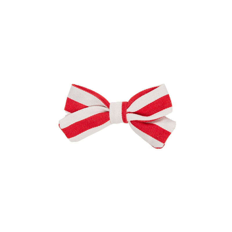 Expertly crafted, this striped small bow comes in vibrant red or classic denim. Its design adds a touch of style to any outfit, making it perfect for both casual and formal occasions. Elevate your look with this versatile accessory.1570s-