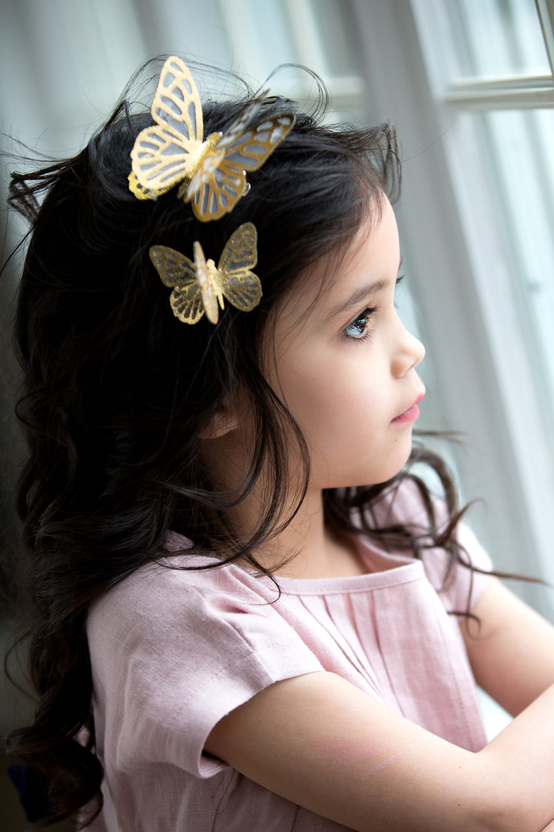 These beautiful, winged butterflies appear as if they've just perched themselves atop your baby's head. The lace fabric adds a sophisticated elegance that is hard to match. Each hairpin has an extra wing in its center, to give it life of its own.