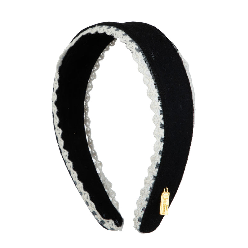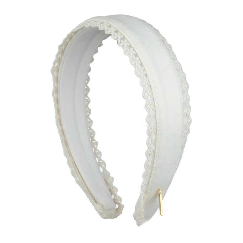 for that perfect winter look we combined wool edged with white trimming for a sharp flair. this headband is great to brighten up her wardrobe.