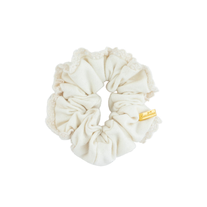 for that perfect winter look we combined wool edged with white trimming for a sharp flair. this scrunchie is great to brighten up her wardrobe.