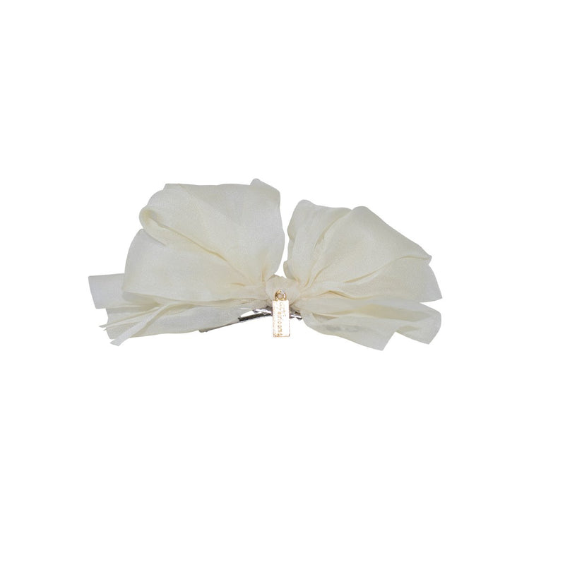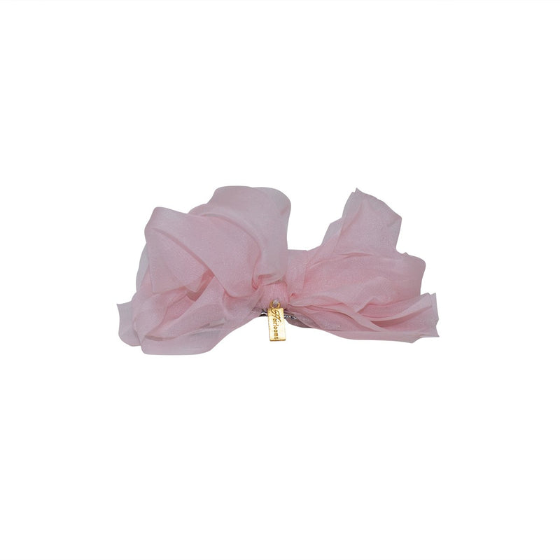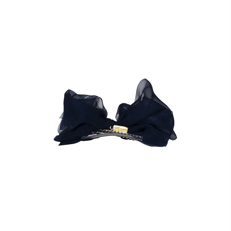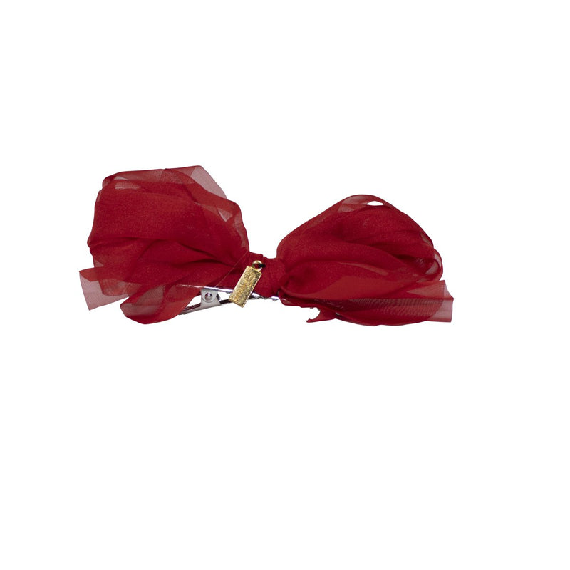 The sheer beauty of this bow is nothing short of special. The layers fall in graceful waves because it is made with four different widths of silk chiffon. This bow is sure to be the crowning touch to her holiday ensemble. Bow is attached to a metal alligator clip that holds a decent strand of hair.