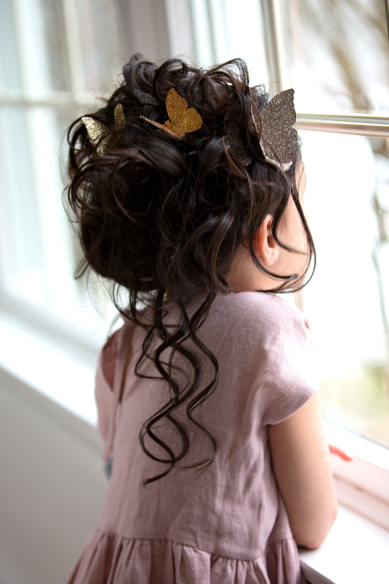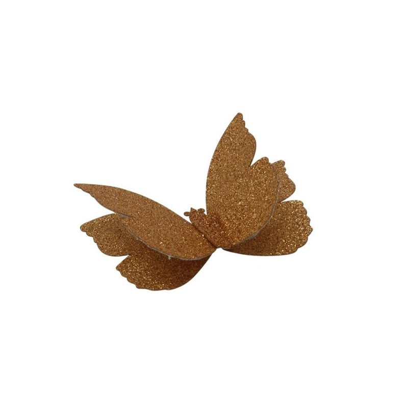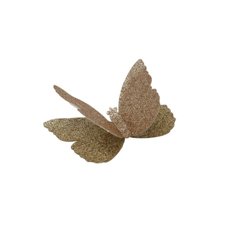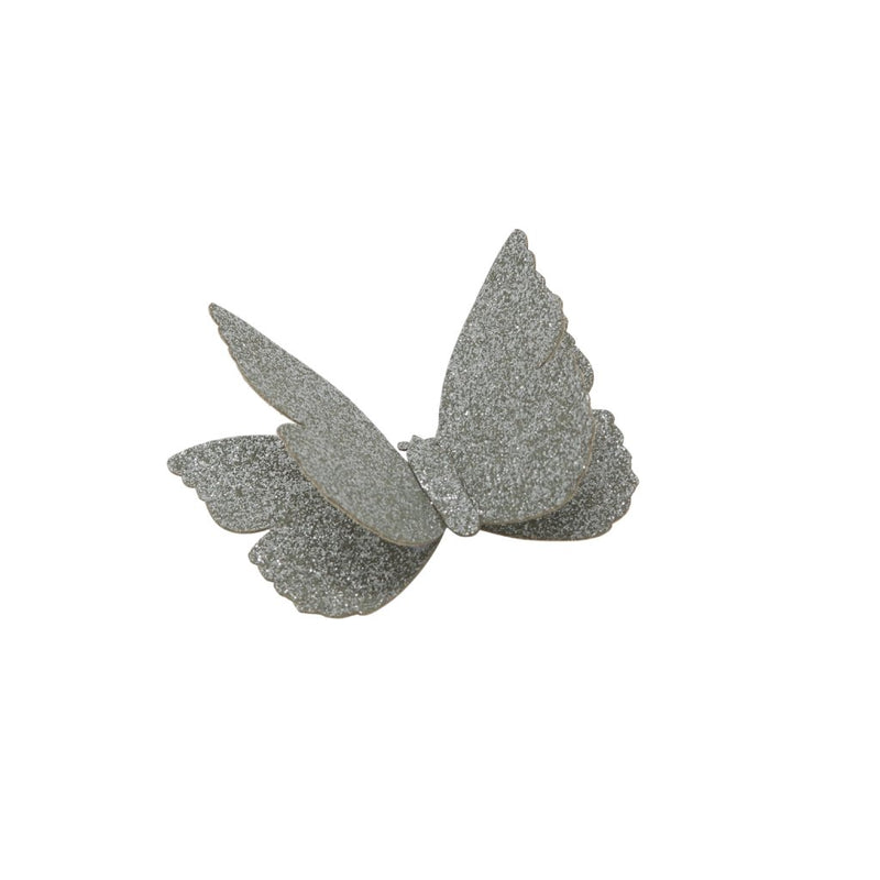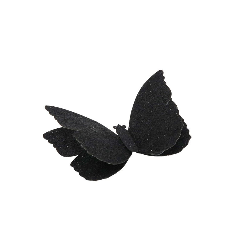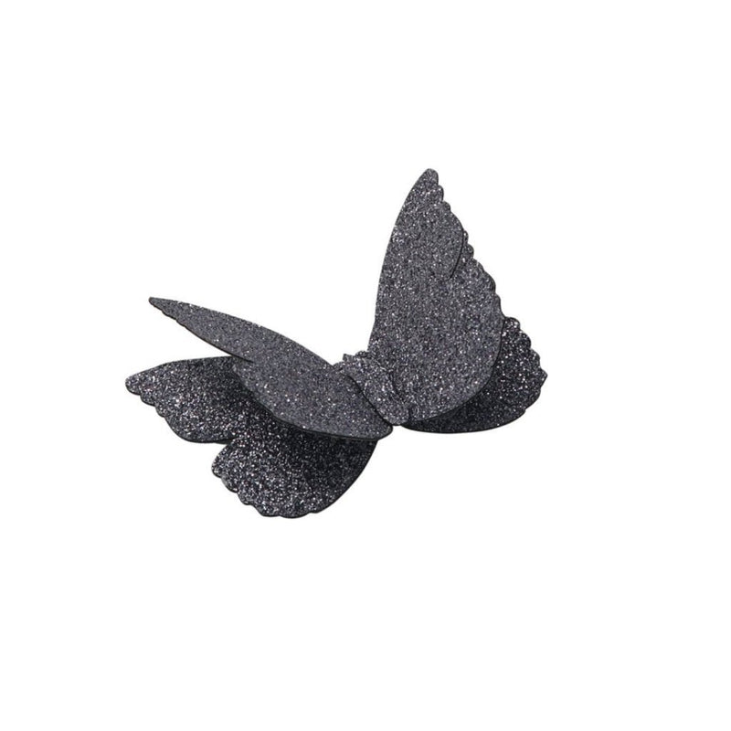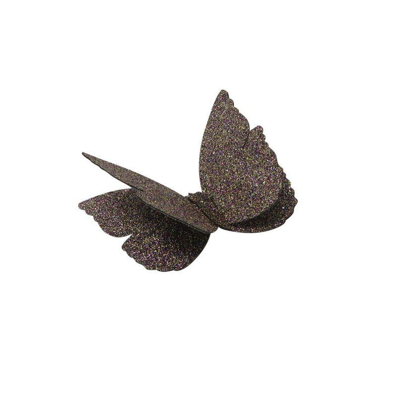 These glittered butterflies, with their elegant sparkle, add enough excitement to finish off any wardrobe. They're made with durable backing to give them life of they're own. Each butterfly is attached to a toothed metal clip.