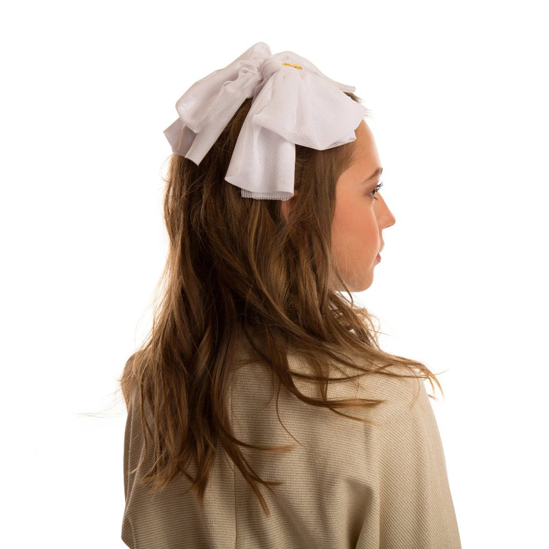 This classic bow is the ultimate elegant, yet easy accessory for any occasion. Bow has an extra layer for more chic and style. Arranged on an alligator clip for ultimate hold and comfort.