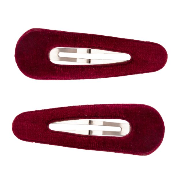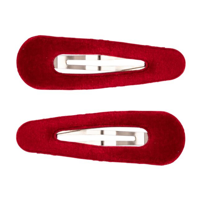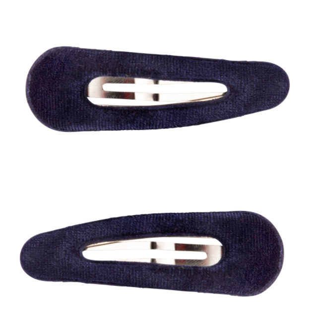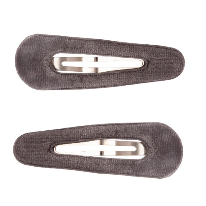 This clip is a plush, velvet version of our own classic. Always sleek and trendy, it adds a pop of color to any hairstyle. Perfect for tucking in loose strands, or clip it in anywhere, just for fun. Set includes two hairpins.