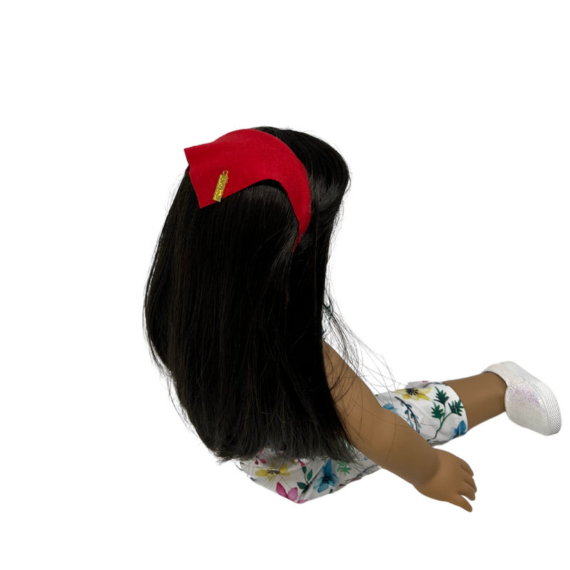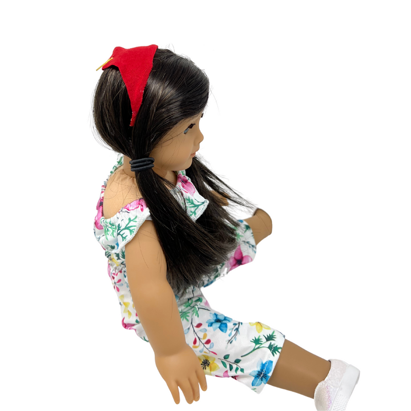 Does your girl love matching with her doll??? we got you covered. this adorable cotton bandana is attached to a headband designed to fit most 18 inch dolls. pick up the matching accessories for yourself and play in style.