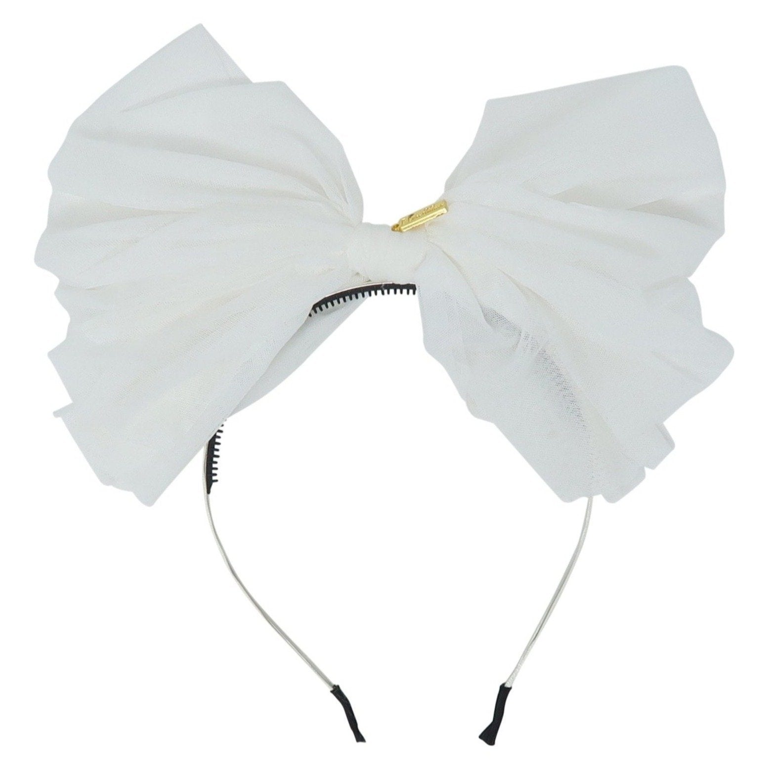 This classic bow is the ultimate elegant, yet easy accessory for any occasion. Bow has an extra layer for more chic and style. Arranged in the center of a satin-covered headband with rubber teeth for extra hold and comfort.