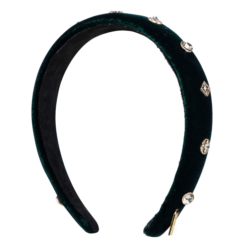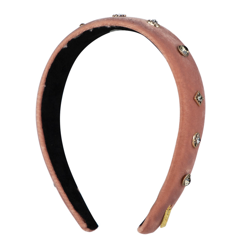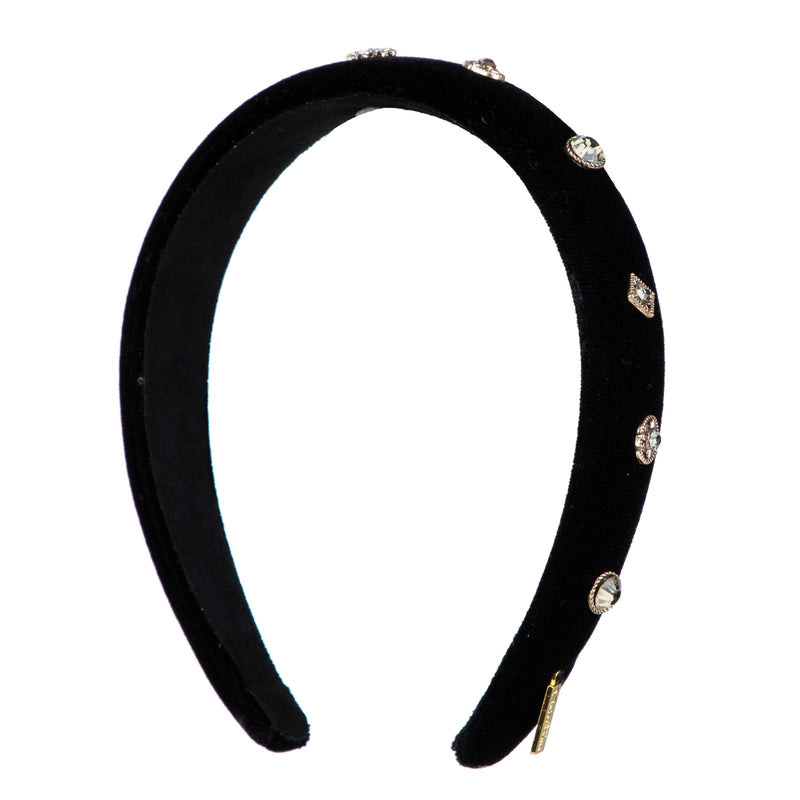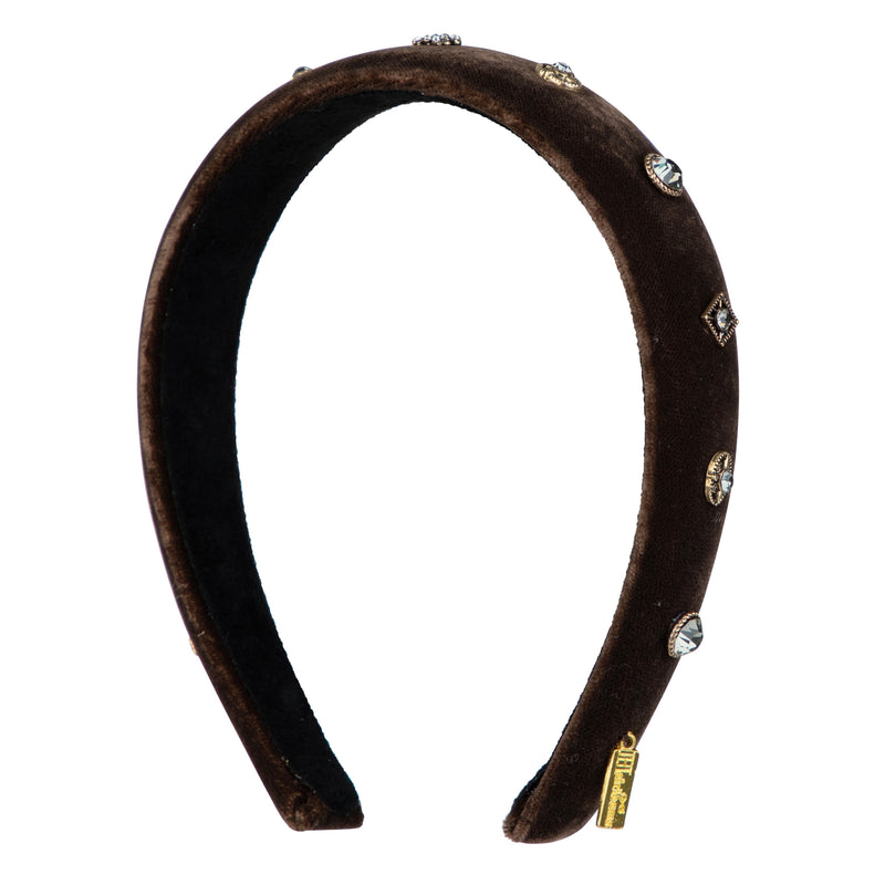 take a step back in time to this timeless elegant piece. luxurious velvet puff headband with antique colored stones on it. this headband is the perfect occasion piece.